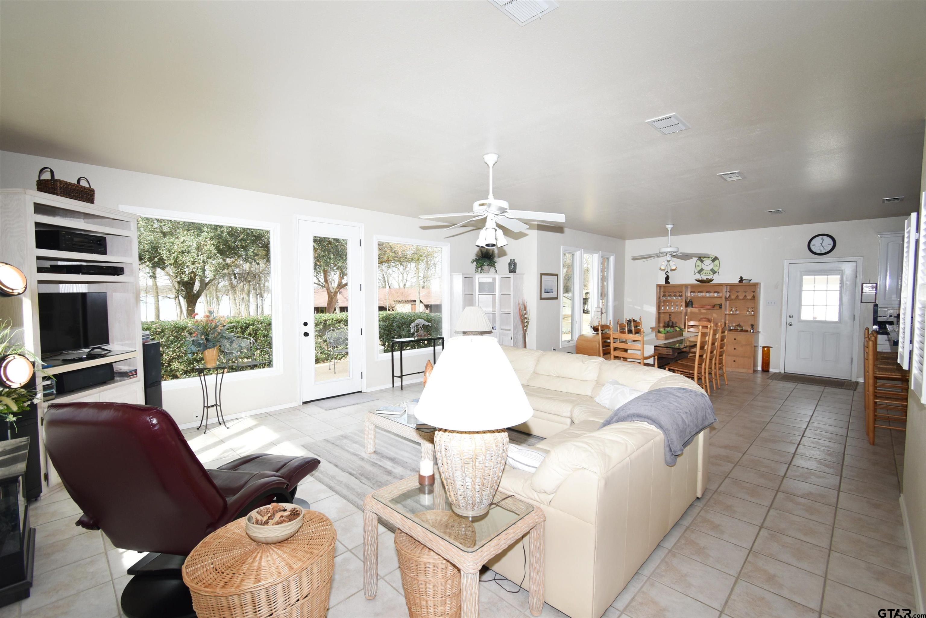 Extremely well maintained Lake Fork home, located in a great subdivision with fantastic neighbors on Legendary Lake Fork. This property has beautiful views of Lake Fork with the community boat ramp right out your side door. Home features 2 bedrooms and 2 bathrooms, lots of built-ins and is tiled throughout the home with carpet in the bedrooms. Property has a deep water well to the house so no water bills here. A detached 14' x 24' single car garage with workshop area, a 14' x 14' storage shed that is perfect for all your lawn equipment, your well house is connected to the shed. There is an 11' x 22' open patio area with gorgeous views of World Famous Lake Fork! No HOA here, but subdivision has deed restrictions to site-built homes only and $300 per year road maintenance fee for private road. All furnishings and appliances are negotiable. Buyer to verify any and all information. |