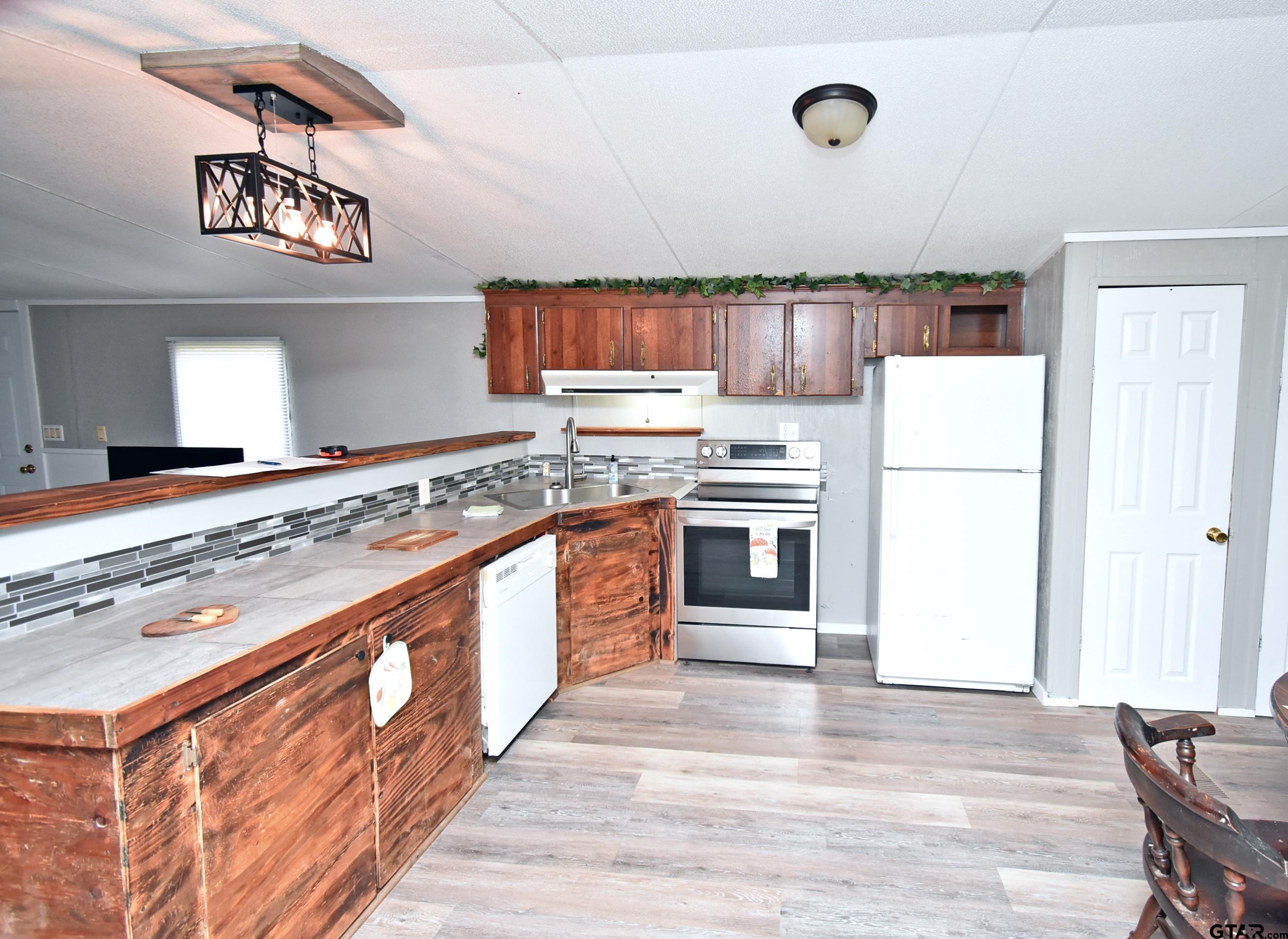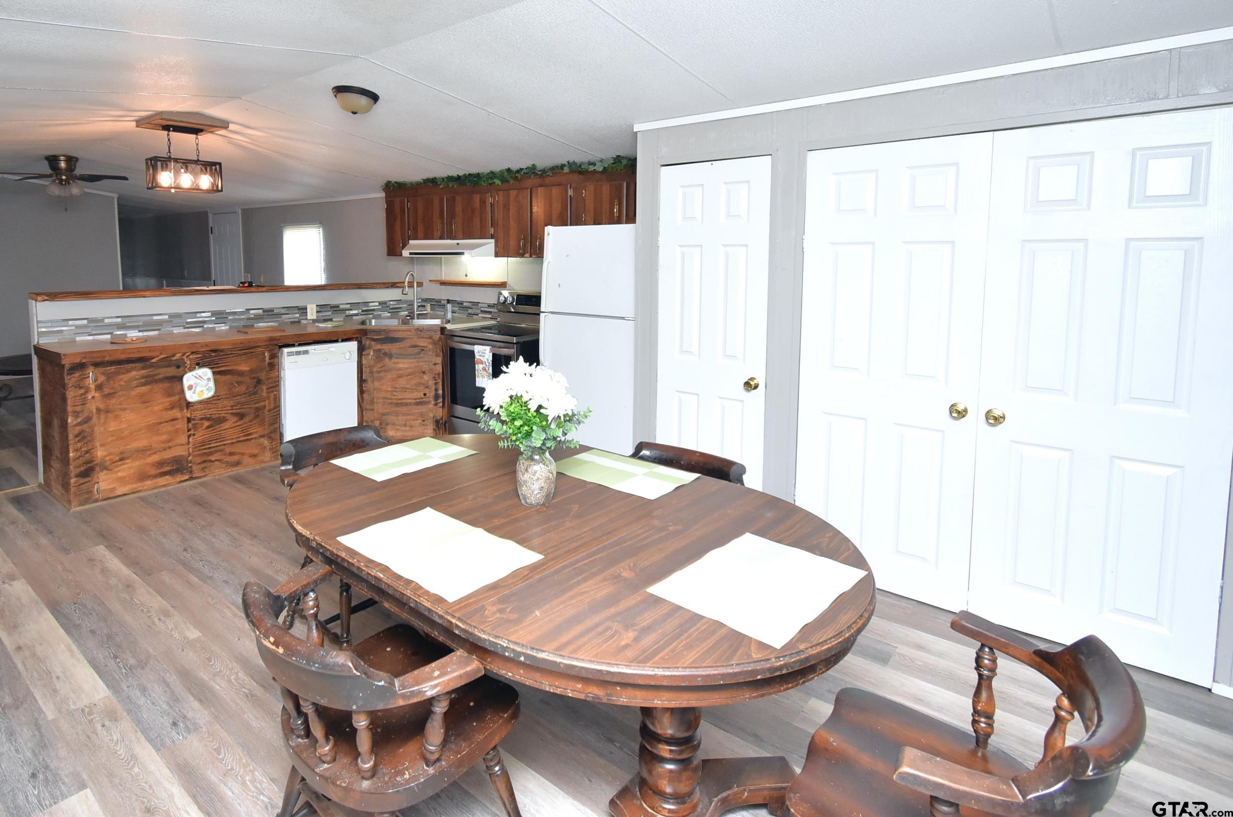 Here is a must see 3 bedroom, 2 bathroom totally updated home on 1.0 acre. The inside has new cabinets, fresh paint, new carpet in the bedrooms and new laminate flooring throughout the home plus updated appliances and light fixtures. There is a metal 2 stall over sized detached garage workshop. One side of the workshop is a great man cave with built-in cabinets with an A/C window unit. The other side of the garage is big enough for your bass boat or it would make a great workshop area. Home has a 6.6 x 7 front porch and a 6.8 x 13 covered back porch. The entire acre lot has metal fencing with a large entry gate. Lake Quitman is just 5 minutes away, or be fishing at Legendary Lake Fork in 10 mins or less! This home is first time buyer ready and should be eligible for all kinds of financing! Buyer to verify any and all information. |