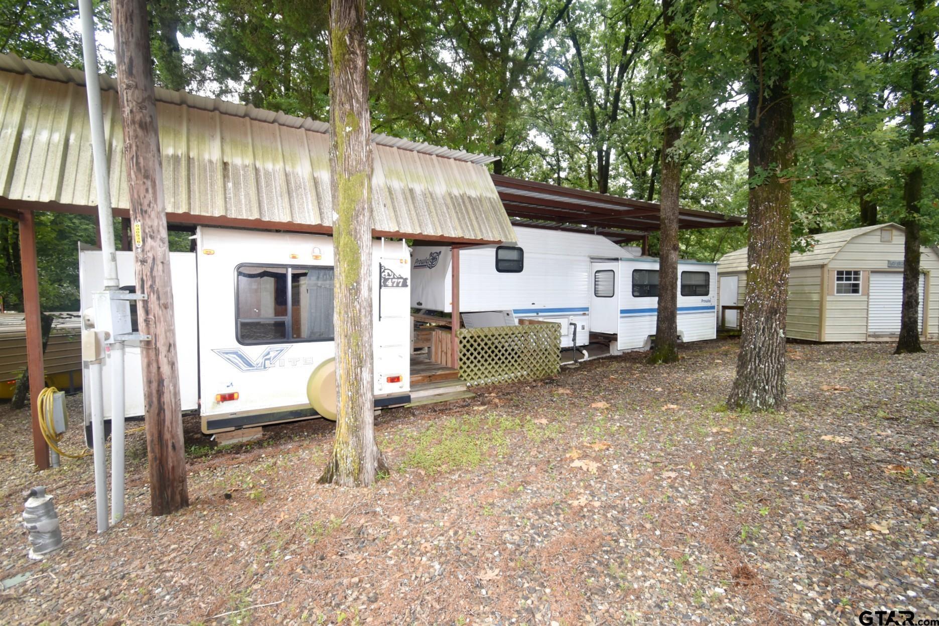 3 Lots in White Oak Shores Subdivision on Legendary Lake Fork. 2 RV sites, with full hook ups for your weekend or long term adventures! Included with this sale are 2 RVs, the first one is a 1995 Prowler by Fleetwood 5th wheel, and second one is a 2013 VLite pull behind by Flagstaff. Additional features are covered decking connecting the 2 RVs, a sturdy metal covers for both of the RVs, a spray foam insulated shed for laundry and storage and a stone fire pit. There is a full sized water heater, upgraded exterior water shut offs for each RV. Community includes private boat ramp and fishing pier to World Famous Lake Fork, as well as community pool, playground and clubhouse for property owners only. HOA fees are approximately $40 per month and include full use of the facilities. There is something for the entire family here! Buyer to verify any and all information. |